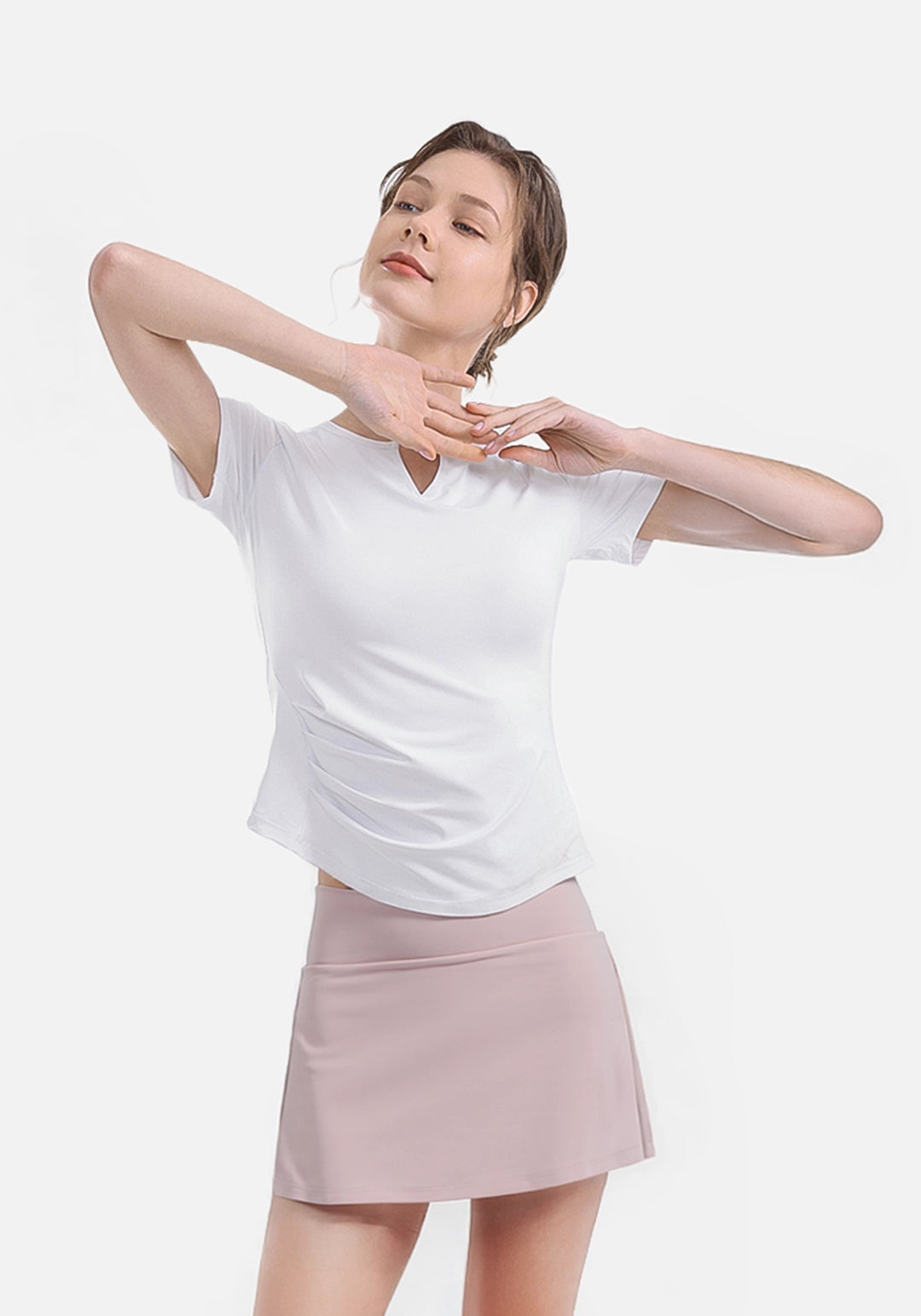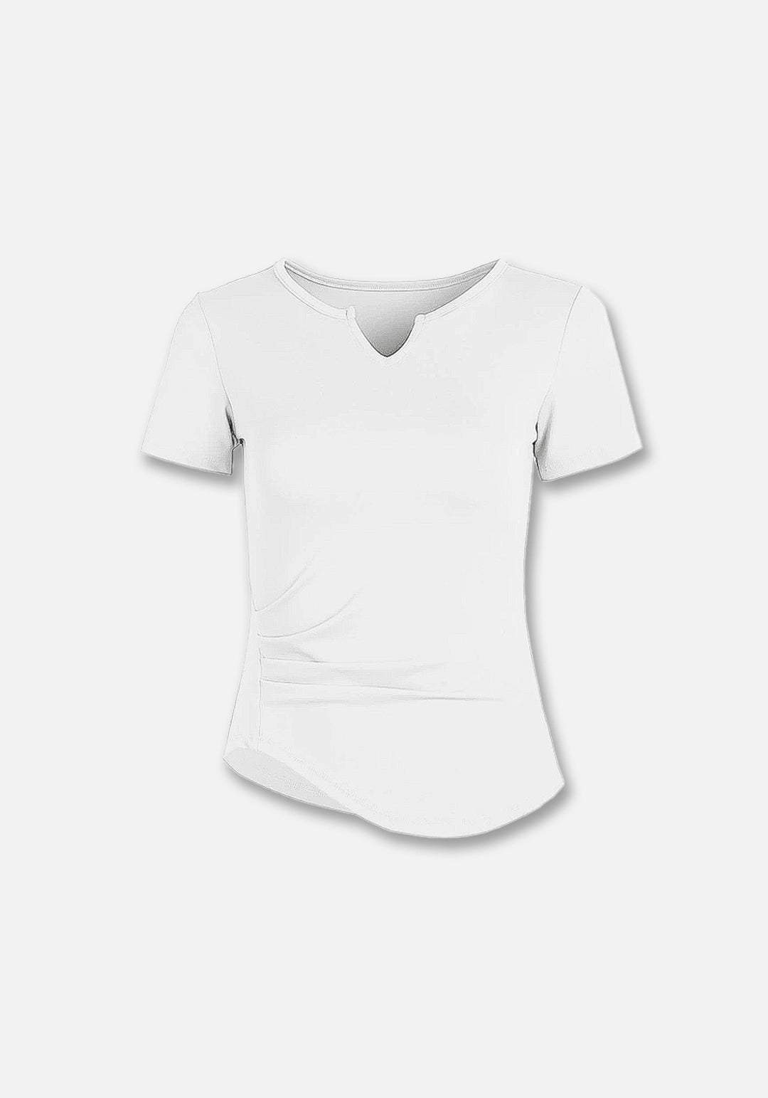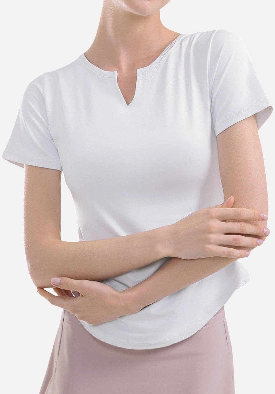 Performance Meets Elegance: Move freely and confidently in the SleekFlex Tee, a perfect fusion of style and performance. With a sleek V-neck, contoured fit, and breathable, stretch-enhanced fabric, this half-sleeve top offers all-day comfort for workouts, yoga, or casual wear.